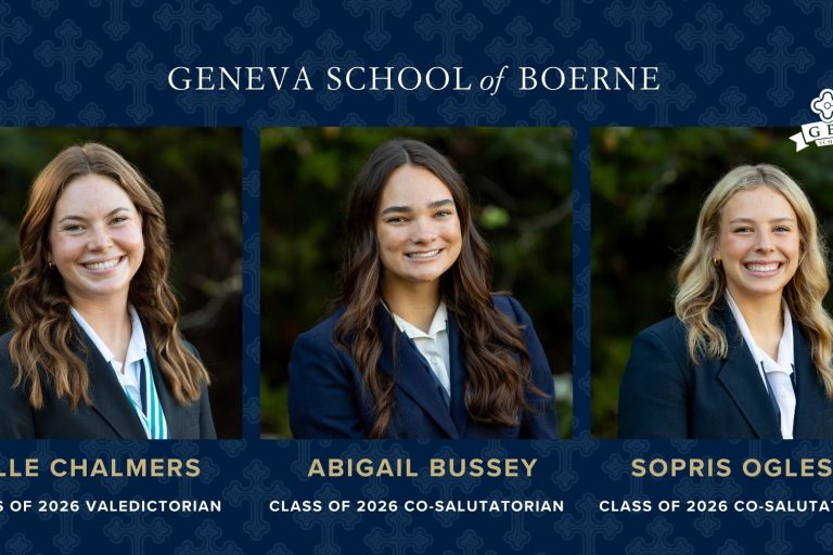 Geneva School of Boerne has named its 2026 Valedictorian and Co-Salutatorians. These graduating seniors will deliver addresses at the Geneva Commencement Exercises in May. Elle Chalmers, daughter of Rob and…