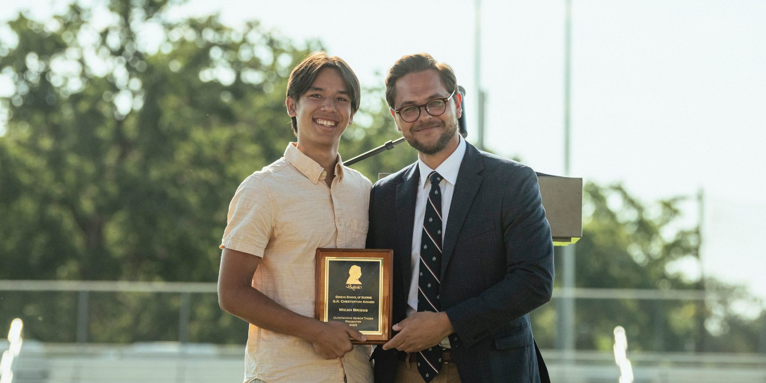 This year, the 42 seniors presented and defended their theses, and Micah Briggs was recognized as the 2025 winner of the G.K. Chesterton Award for the best overall senior thesis presentation for his thesis titled, “The Sky is Not Falling: A Re-Evaluation of the Climate Apocalypse.” Other G.K. Chesterton Finalists included Victoria Allen, Ella Dillinger, Kate Friesenhahn, Jack Walker Harden, Emma Malkowski, Mandy Mills, Jackson Mitchell, Hannah Reyes, Jake Roberson, Rachel Troyer and John Walter.
