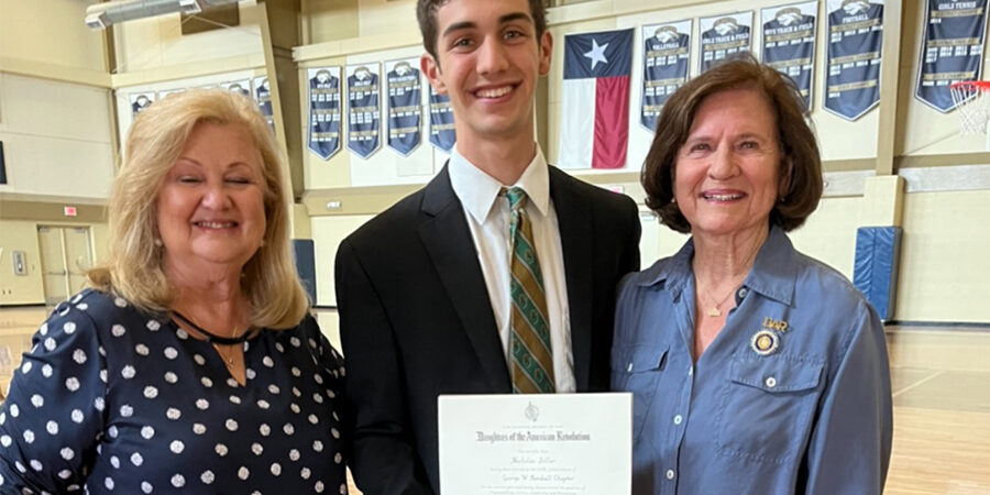Geneva School of Boerne senior Nicolas Siller received the Good Citizen Award from the George R. Kendall Chapter of the National Society of Daughters of the American Revolution. He was selected for his qualities of dependability, service, leadership and patriotism and received a $1,000 scholarship as well as a Good Citizen pin.