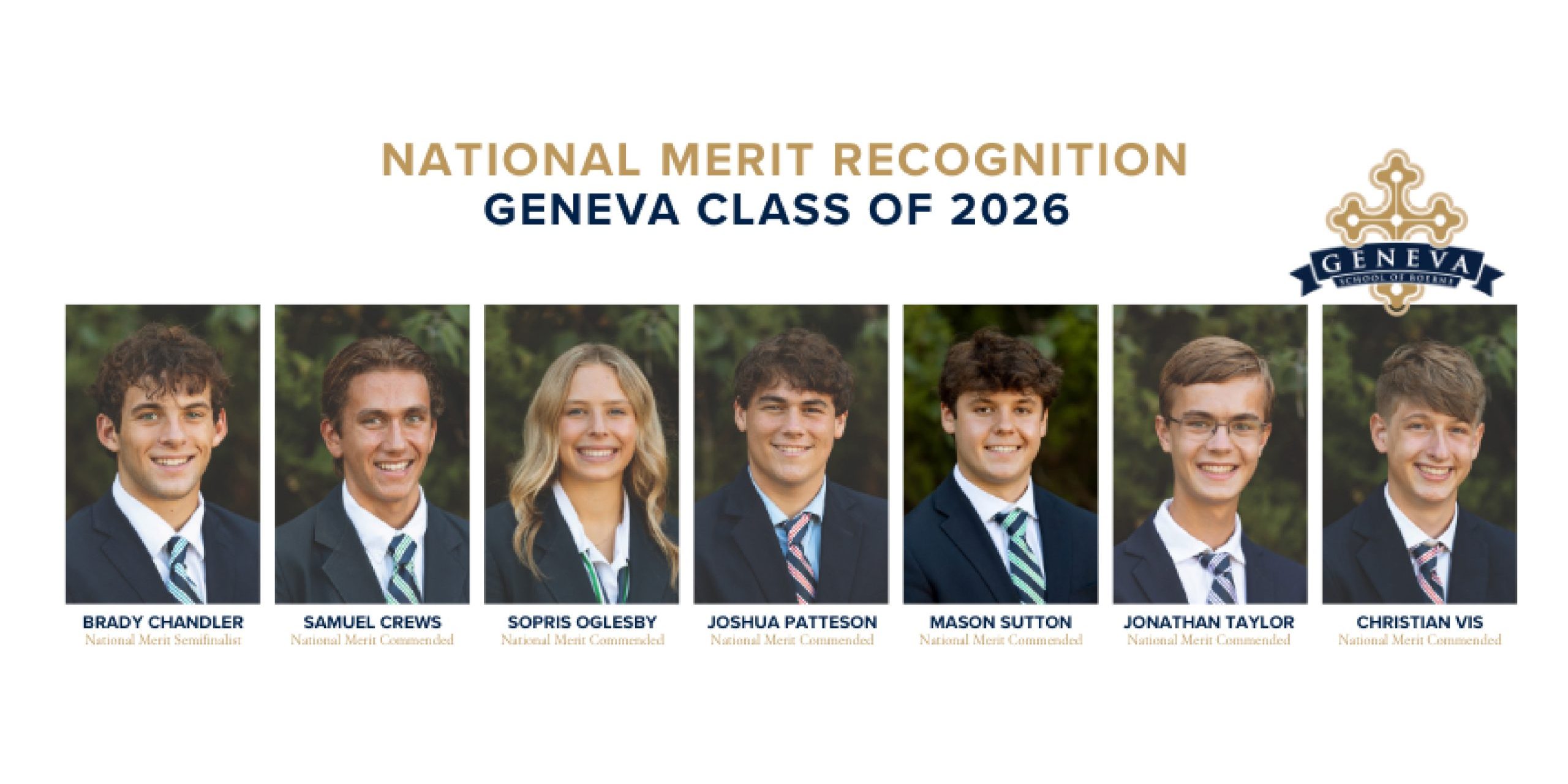 Geneva School of Boerne is proud to announce that seven seniors earned recognition from the National Merit Scholarship Corporation. Brady Chandler was named National Merit Semifinalist. Samuel Crews, Sopris Ogelsby, Joshua Patteson, Mason Sutton, Jonathan Taylor and Christian Vis were named National Merit Commended Scholars. These students achieved these awards for their academic accomplishments on the 2024 Preliminary SAT/National Merit Scholarship Qualifying Test.