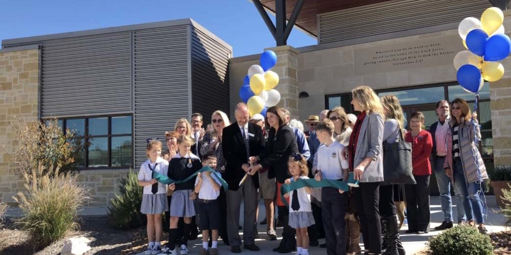 The Boerne Chamber of Commerce came to help Geneva officially open the new Grammar School buildings on November 1, 2018, with a ribbon-cutting ceremony.