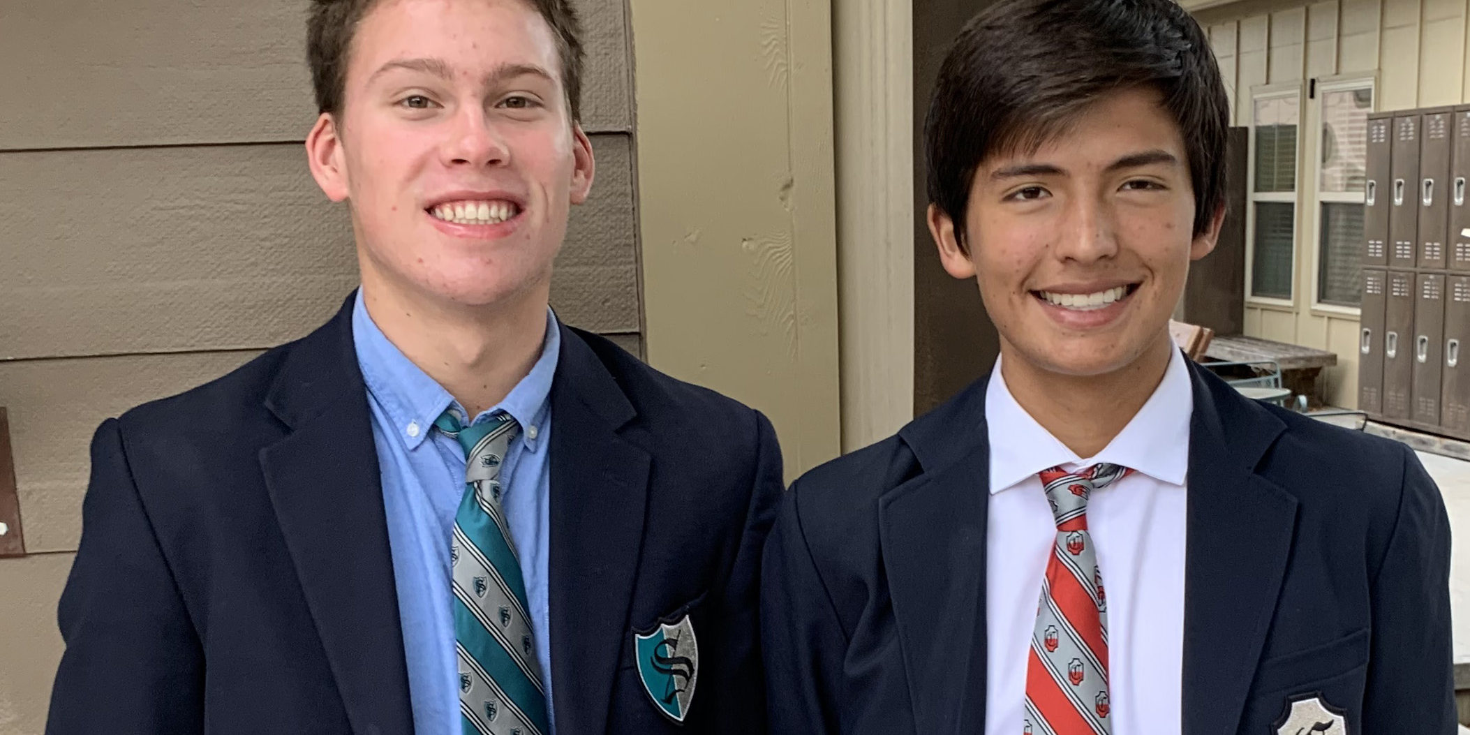 Junior Alex Iyer (at left) placed first in the Program of Oral Interpretation category (POI) at Bowie High School and second place in Original Oratory at St. Michael’s. In addition, the Public Forum debate team of junior classmen Jose Ballí and Gabe Ross (at right) made it to the Octafinals, ultimately tying for ninth place.